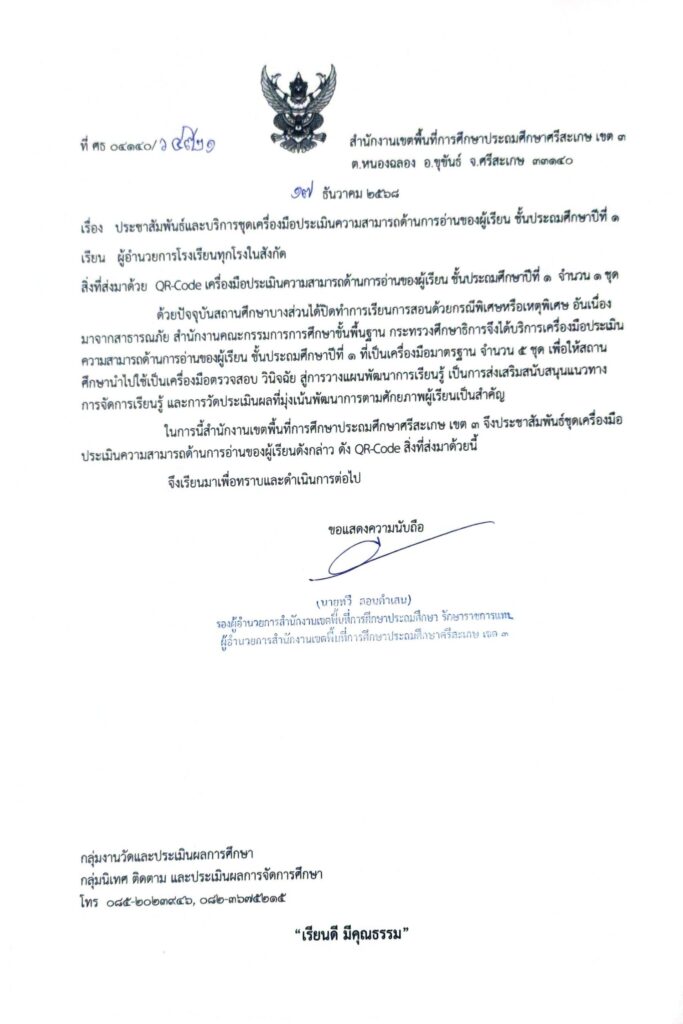 ประชาสัมพันธ์และบริการชุดเครื่องมือประเมินความสามารถด้านการอ่านของผู้เรียน ชั้นประถมศึกษาปีที่ 1 ธันวาคม 17, 2025 Last updated : ธันวาคม 17, 2025 Phakjerawan wayophat