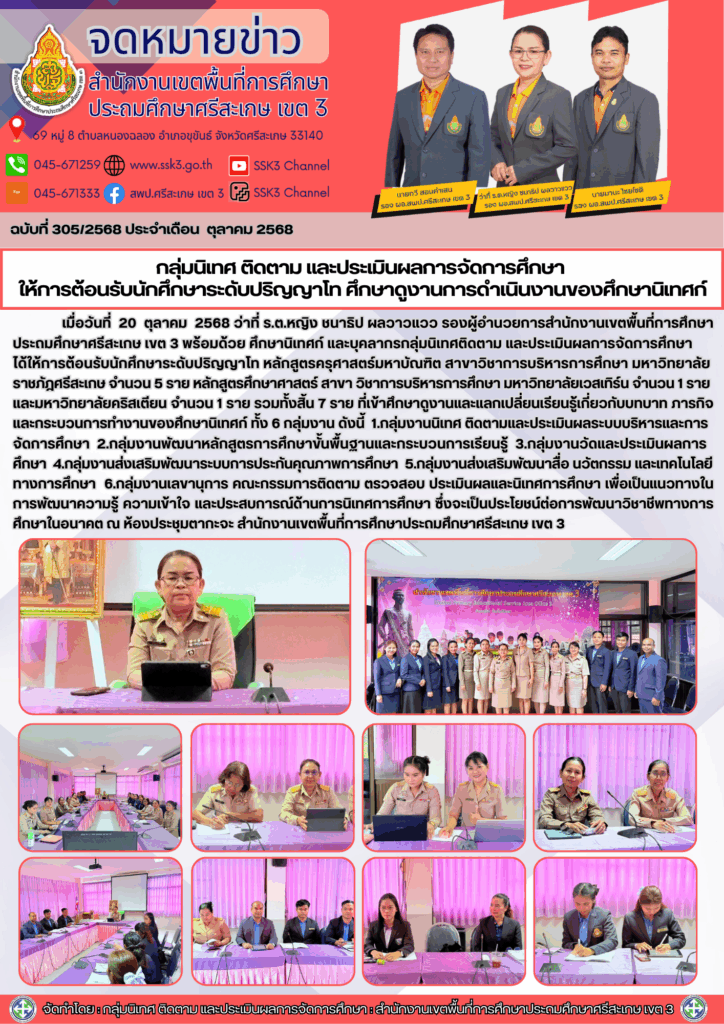 กลุ่มนิเทศ ติดตาม และประเมินผลการจัดการศึกษาให้การต้อนรับนักศึกษาระดับปริญญาโท ศึกษาดูงานการดำเนินงานของศึกษานิเทศก์ ตุลาคม 29, 2025 Last updated : ตุลาคม 29, 2025 Phakjerawan wayophat