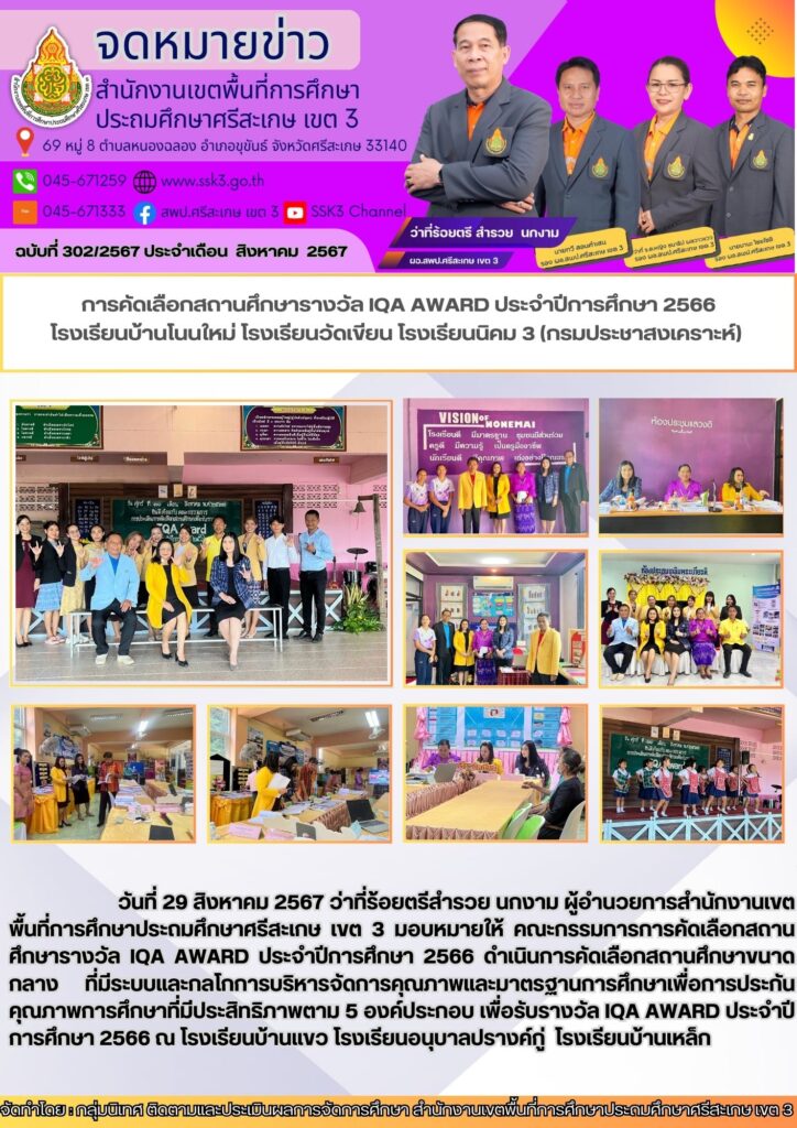 การคัดเลือกสถานศึกษาเพื่อรับรางวัล IQA AWARD ประจำปีการศึกษา 2566 โรงเรียนบ้านโนนใหม่ โรงเรียนวัดเขียน โรงเรียนนิคม 3 (กรมประชาสงเคราะห์)