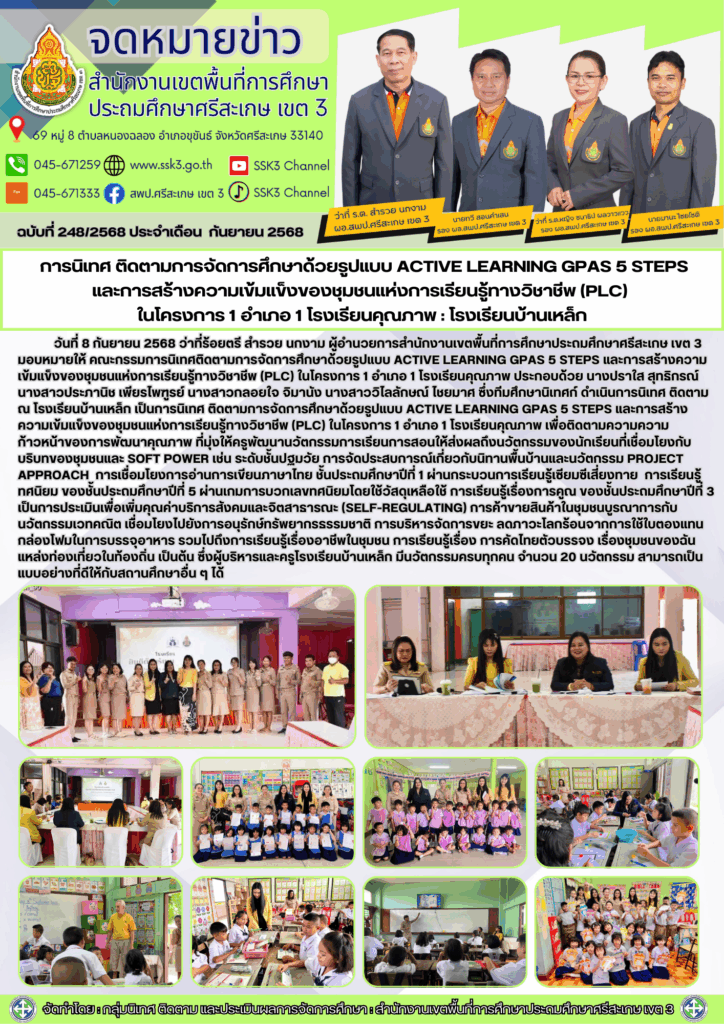 การนิเทศ ติดตามการจัดการศึกษาด้วยรูปแบบ Active Learning GPAS 5 Steps และการสร้างความเข้มแข็งของชุมชนแห่งการเรียนรู้ทางวิชาชีพ (PLC) ในโครงการ 1 อำเภอ 1 โรงเรียนคุณภาพ : โรงเรียนบ้านตะเคียนราม