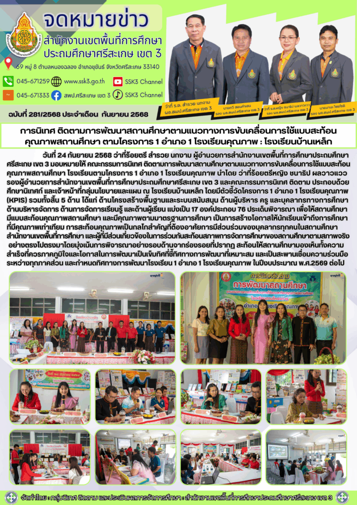 การนิเทศ ติดตามการพัฒนาสถานศึกษาตามแนวทางการขับเคลื่อนการใช้แบบสะท้อนคุณภาพสถานศึกษา ตามโครงการ 1 อำเภอ 1 โรงเรียนคุณภาพ : โรงเรียนบ้านเหล็ก ตุลาคม 1, 2025 Last updated : ตุลาคม 1, 2025 Phakjerawan wayophat