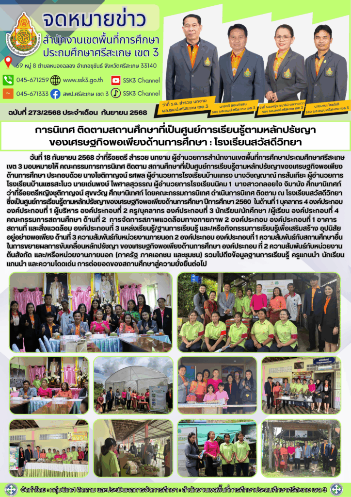 การนิเทศ ติดตามสถานศึกษาที่เป็นศูนย์การเรียนรู้ตามหลักปรัชญาของเศรษฐกิจพอเพียงด้านการศึกษา : โรงเรียนสวัสดีวิทยา กันยายน 29, 2025 Last updated : กันยายน 29, 2025 Phakjerawan wayophat