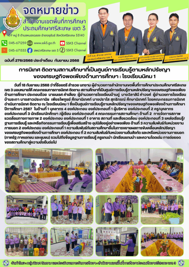 การนิเทศ ติดตามสถานศึกษาที่เป็นศูนย์การเรียนรู้ตามหลักปรัชญาของเศรษฐกิจพอเพียงด้านการศึกษา : โรงเรียนนิคม 1 ตุลาคม 1, 2025 Last updated : ตุลาคม 1, 2025 Phakjerawan wayophat