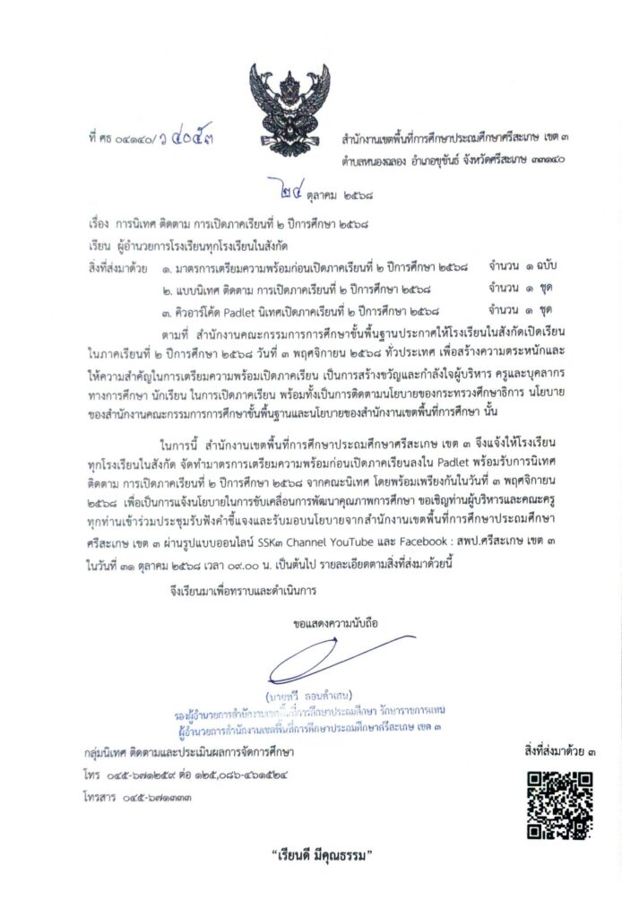 การนิเทศ ติดตาม การเปิดภาคเรียนที่ 2 ปีการศึกษา 2568 ตุลาคม 24, 2025 Last updated : ตุลาคม 24, 2025 Phakjerawan wayophat