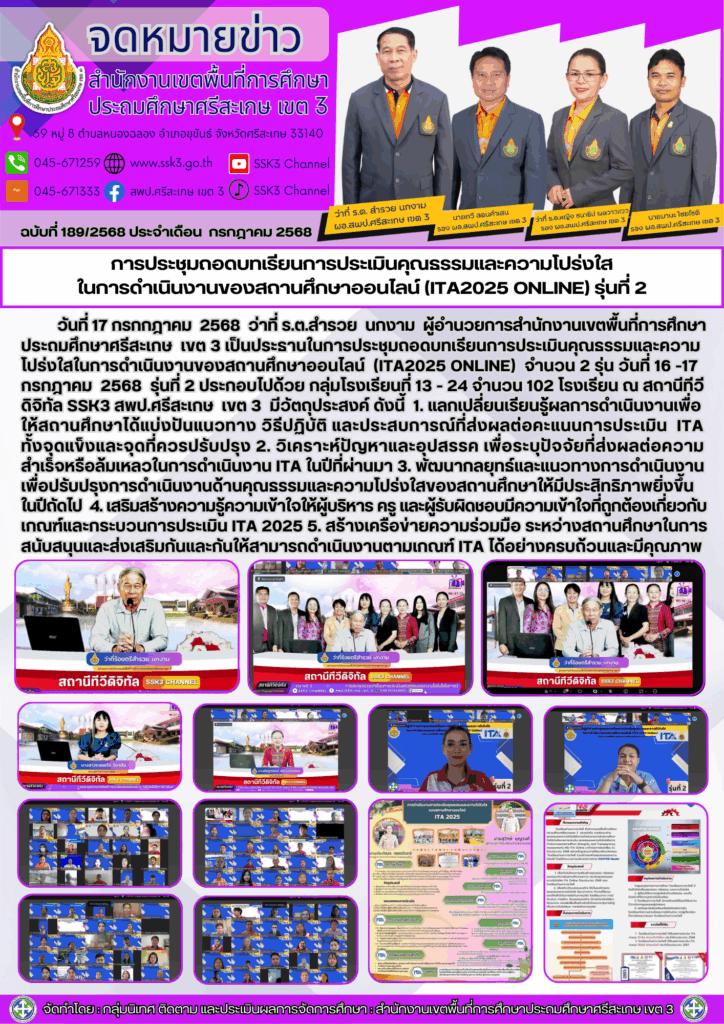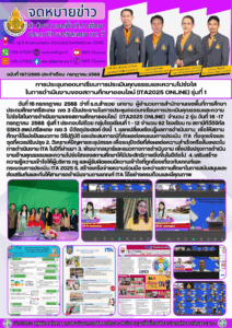 การประชุมถอดบทเรียนการประเมินคุณธรรมและความโปร่งใสในการดำเนินงานของสถานศึกษาออนไลน์ (ITA2025 ONLINE) รุ่นที่ 2 กรกฎาคม 18, 2025 Last updated : กรกฎาคม 18, 2025 Phakjerawan wayophat