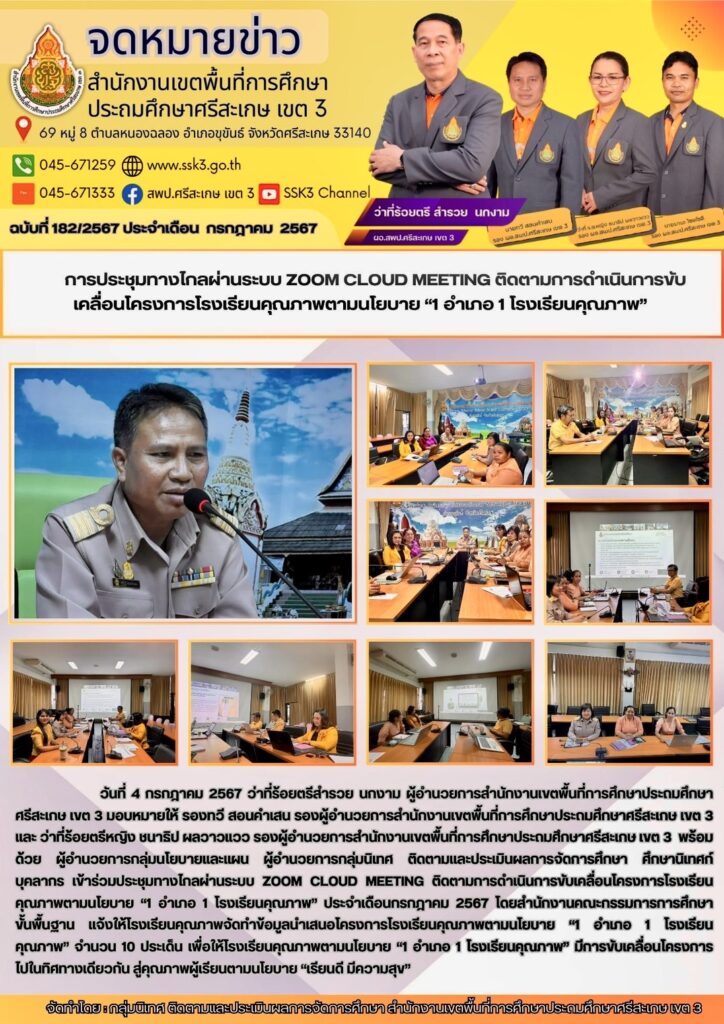 การประชุมทางไกลผ่านระบบ ZOOM CLOUD MEETING ติดตามการดำเนินการขับเคลื่อนโครงการโรงเรียนคุณภาพตามนโยบาย "1 อำเภอ 1 โรงเรียนคุณภาพ" กรกฎาคม 5, 2024 Last updated : กรกฎาคม 5, 2024 wilailak chaiyamas