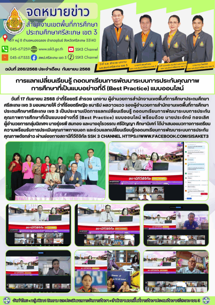 การแลกเปลี่ยนเรียนรู้ ถอดบทเรียนการพัฒนาระบบการประกันคุณภาพการศึกษาที่เป็นแบบอย่างที่ดี (Best Practice) แบบออนไลน์