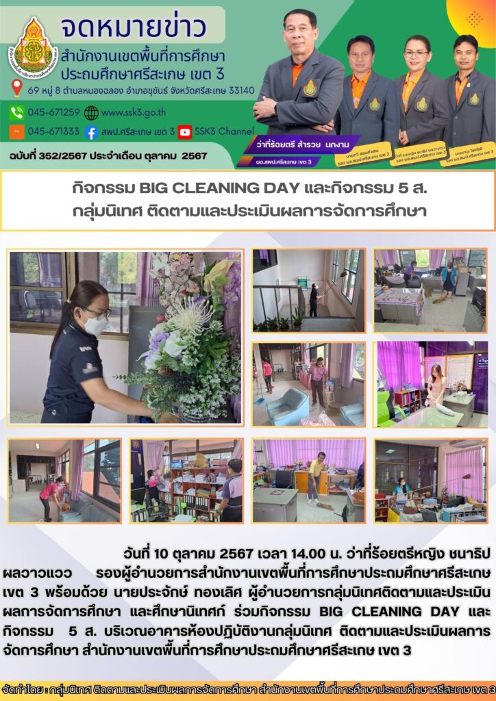 กิจกรรม BIG CLEANING DAY และกิจกรรม 5 ส กลุ่มนิเทศ ติดตาม และประเมินผลการจัดการศึกษา ตุลาคม 16, 2024 Last updated : ตุลาคม 16, 2024 wilailak chaiyamas