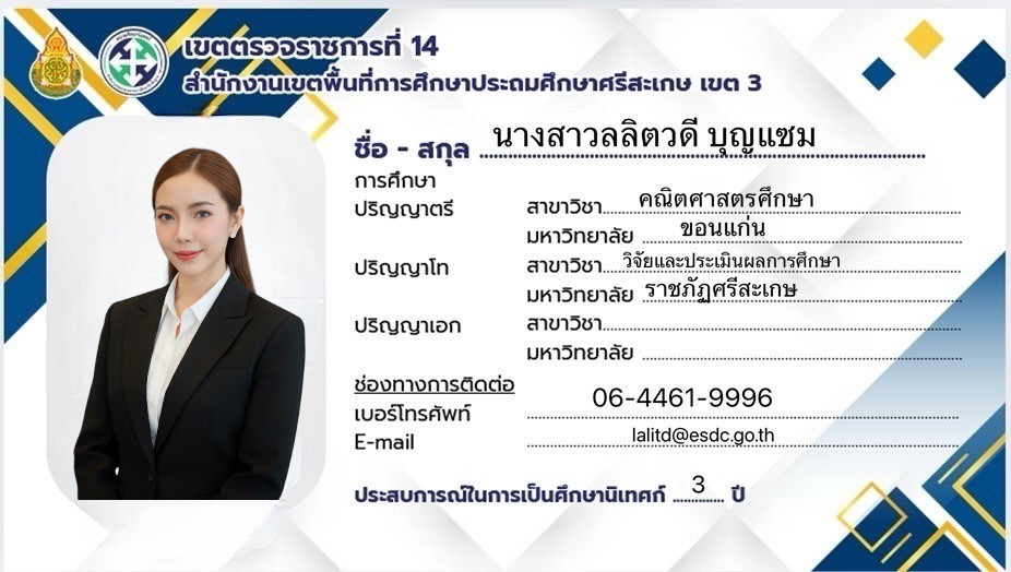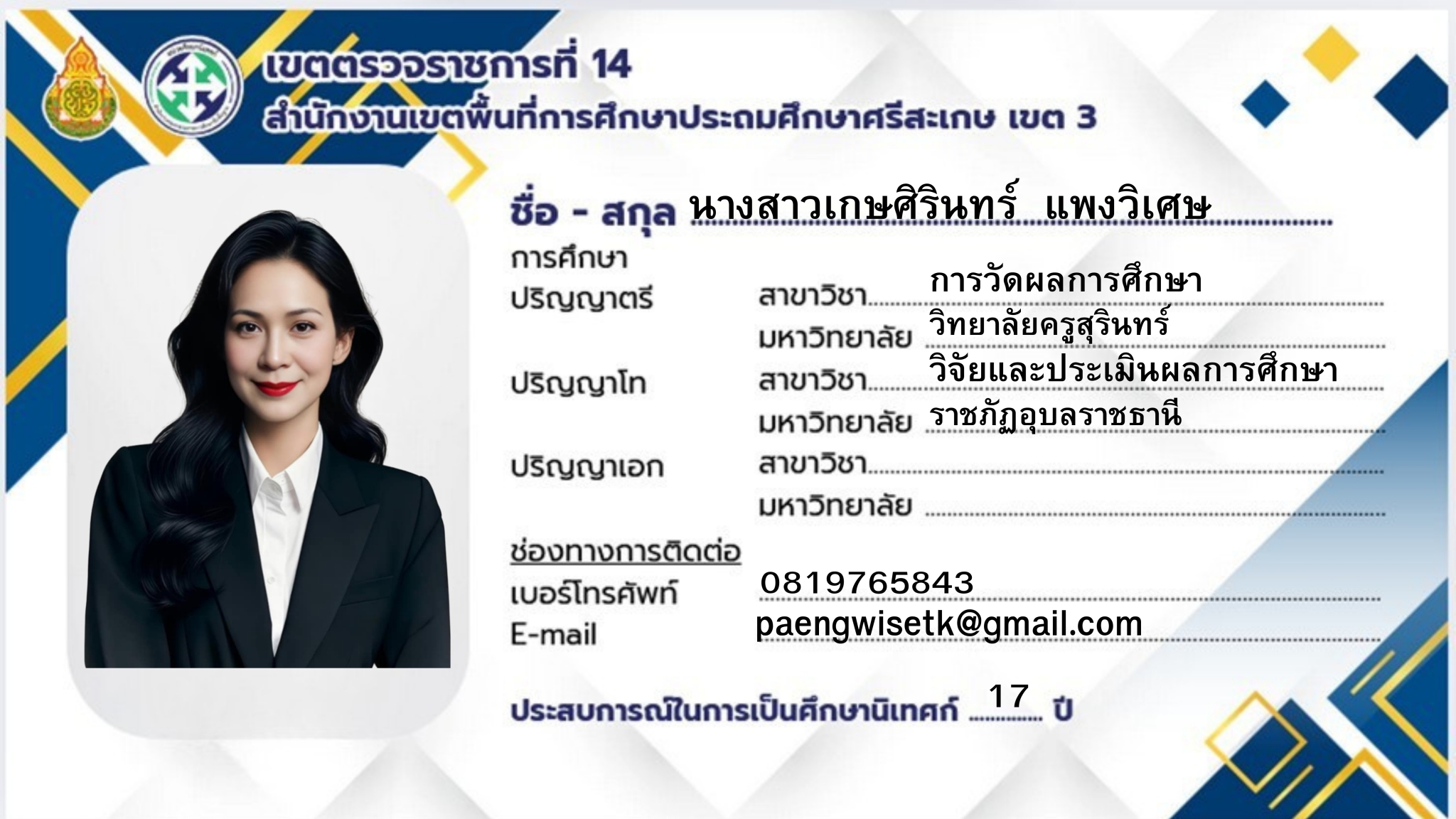 ทำเนียบบุคลากรกลุ่มนิเทศ ติดตามและประเมินผลการจัดการศึกษา