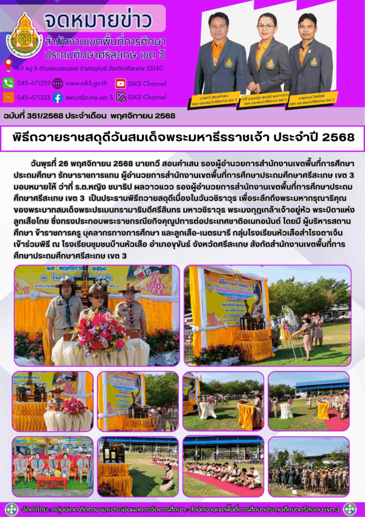 พิธีถวายราชสดุดีวันสมเด็จพระมหาธีรราชเจ้า ประจำปี 2568 พฤศจิกายน 26, 2025 Last updated : พฤศจิกายน 26, 2025 Phakjerawan wayophat