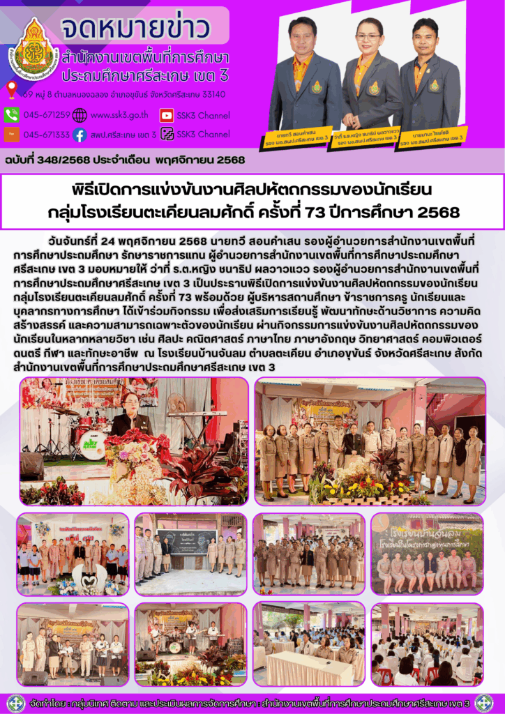พิธีเปิดการแข่งขันงานศิลปหัตถกรรมของนักเรียน กลุ่มโรงเรียนตะเคียนลมศักดิ์ ครั้งที่ 73 ปีการศึกษา 2568
