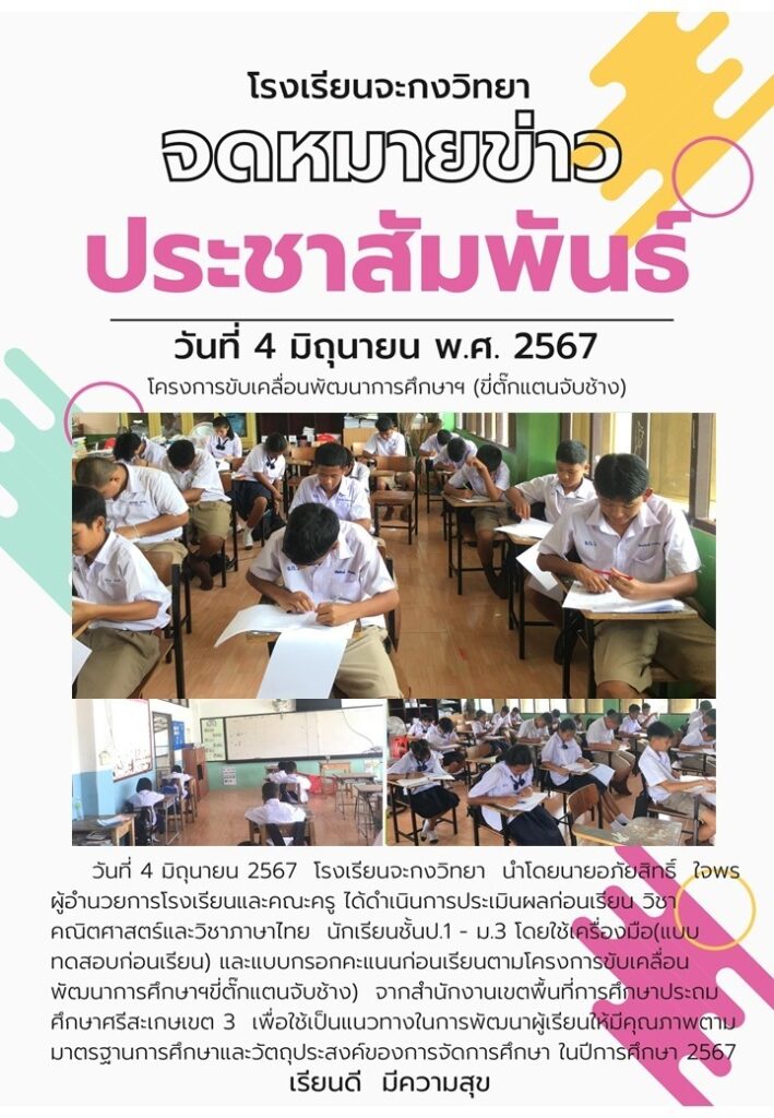 รายงานโครงการขับเคลื่อนพัฒนาคุณภาพการศึกษาการอ่านออก เขียนได้ และคิดเลขเป็น โรงเรียนจะกงวิทยา ตุลาคม 16, 2024 Last updated : ตุลาคม 16, 2024 wilailak chaiyamas
