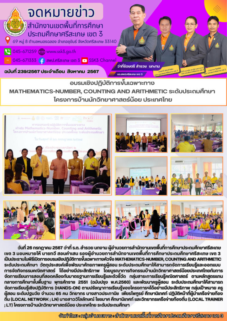 อบรมเชิงปฏิบัติการขั้นเฉพาะทาง MATHEMATICS-NUMBER,COUNTING AND ARITHEMWTICS ระดับประถมศึกษา โครงการบ้านนักวิทยาศาสตร์น้อย ประเทศไทย สิงหาคม 8, 2024 Last updated : กันยายน 25, 2024 wilailak chaiyamas