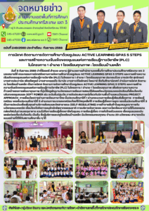 การนิเทศ ติดตามการจัดการศึกษาด้วยรูปแบบ Active Learning GPAS 5 Steps และการสร้างความเข้มแข็งของชุมชนแห่งการเรียนรู้ทางวิชาชีพ (PLC) ในโครงการ 1 อำเภอ 1 โรงเรียนคุณภาพ : โรงเรียนนิคม 3 (กรมประชาสงเคราะห์)