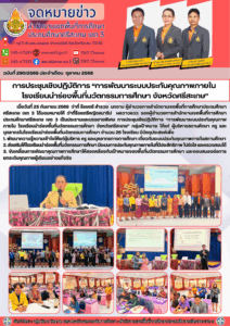 การประชุมเชิงปฏิบัติการ “การพัฒนาระบบประกันคุณภาพภายในโรงเรียนนำร่องพื้นที่นวัตกรรมการศึกษา จังหวัดศรีสะเกษ”